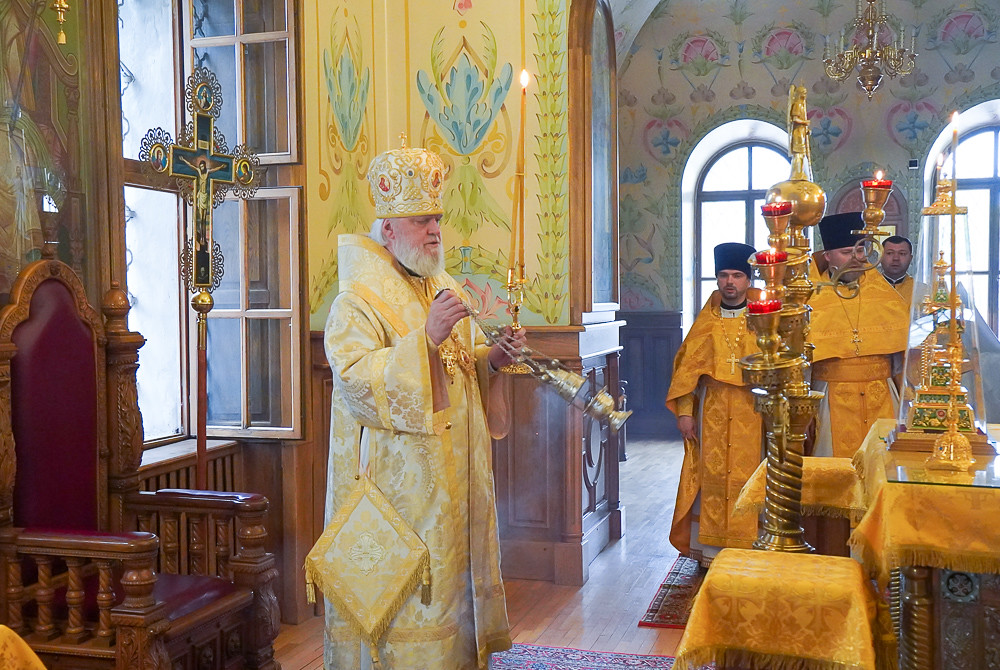 Его Высокопреосвященству сослужили настоятель протоиерей Виталий Киреев, иеромонах Филипп (Сапронов), а также клирики храма.