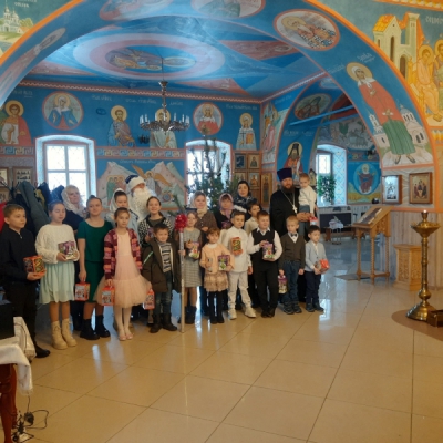 В завершение мероприятия отец Андрей поблагодарил организаторов и участников за подготовленное представление, вручил участникам утренника и всем детям, присутствующим в храме, сладкие подарки. Батюшка еще раз поздравил всех с праздником, пожелал душевного здравия, мира и благоденствия.