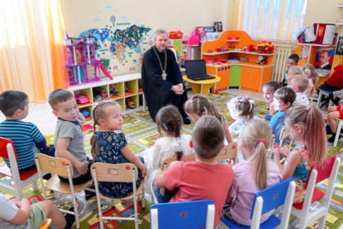 В преддверии празднования Казанской иконы Божией Матери, по инициативе администрации, в Детском саду №21 г. Курска прошла встреча дошколят с настоятелем Сретенского храма г. Курска протоиереем Сергием Клинцовым.