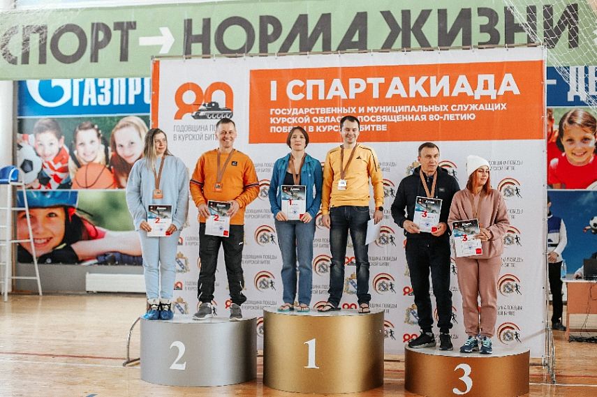 В соревнованиях участвовала 41 команда от регионального правительства, администраций муниципальных районов и городов. Быстрее всех эстафету 2 по 50 метров проплыли железногорцы. Команда администрации впервые на спартакиаде завоевала золотые медали. До этого на пьедестал почёта поднимались мастера маленькой ракетки, которые были третьими.