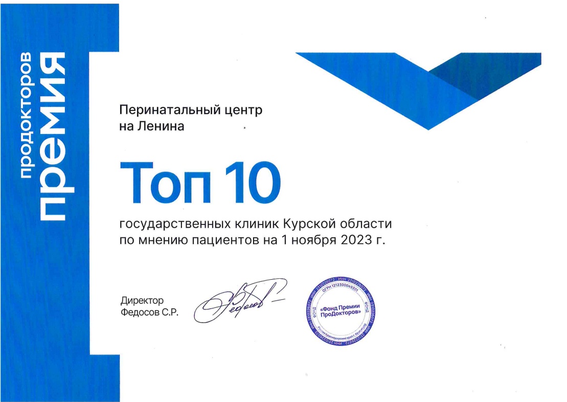 Медики перинатального центра получили письмо от руководителя фонда «Премия ПРОДОКТОРОВ», в котором сообщалось о присуждении звания лучшей клиники и включении в десятку лучших по стране перинатального центра на улице Ленина.