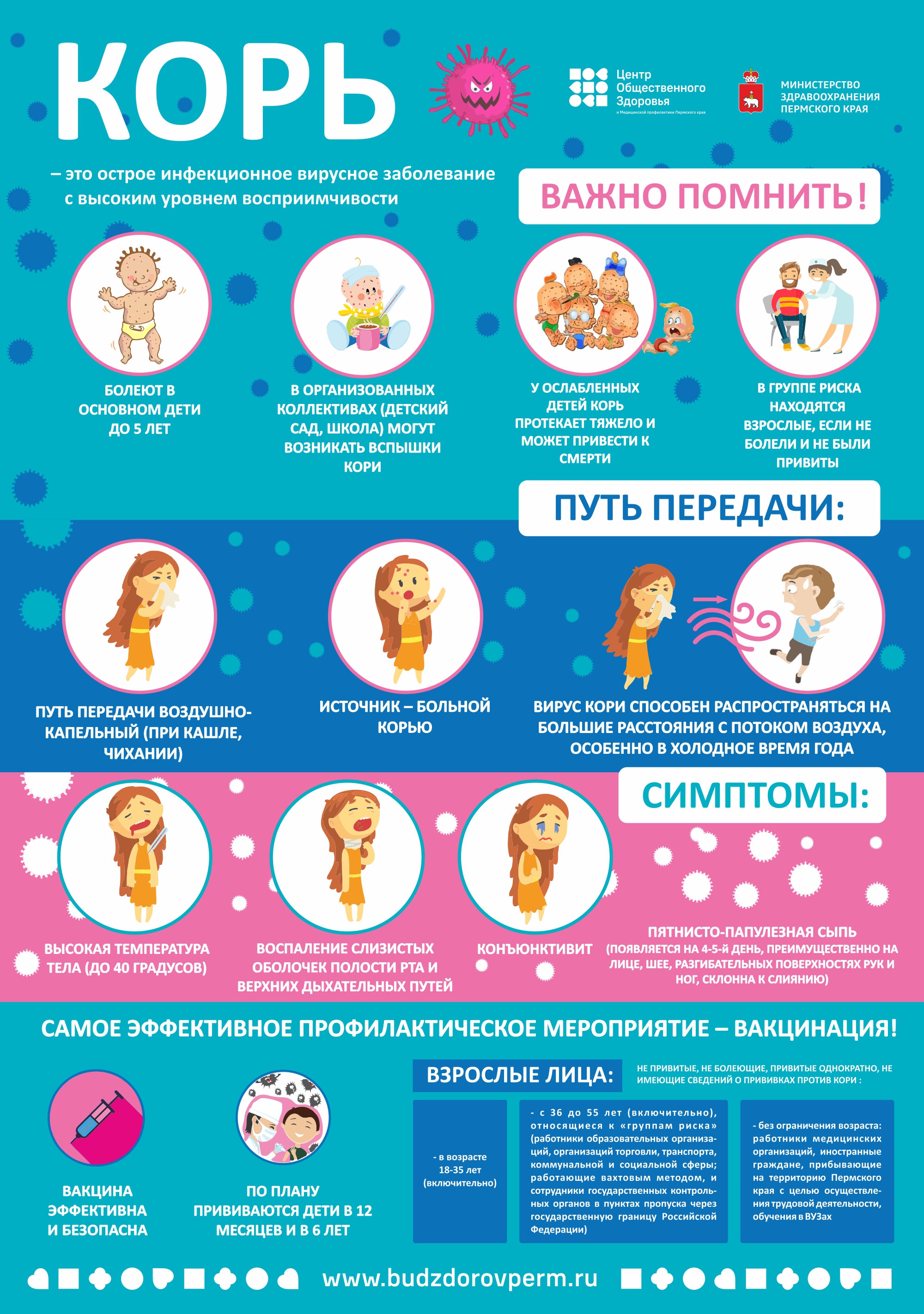 Главной задачей в настоящее время является защита населения от кори, которая возможна только путем проведения профилактических прививок против этой опасной инфекции!