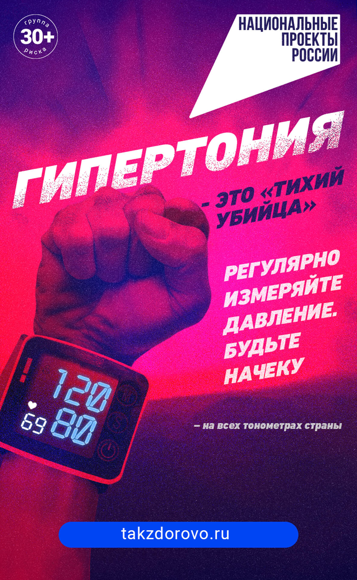 «Социальная реклама. АНО «Национальные приоритеты». Подробнее на национальныепроекты.рф». «Ранняя диагностика артериальной гипертонии» в рамках национального проекта «Здравоохранение»