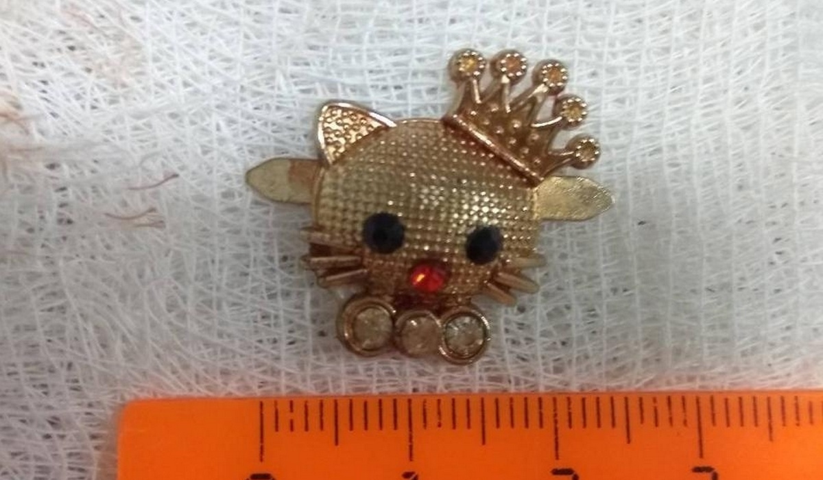 Чаще всего дети случайно проглатывают монеты, игрушки или пуговицы (на фото: один из предметов, извлечённых из пищевода). Особенно опасны дисковые батарейки, которые при проглатывании вызывают некроз слизистой оболочки пищевода.