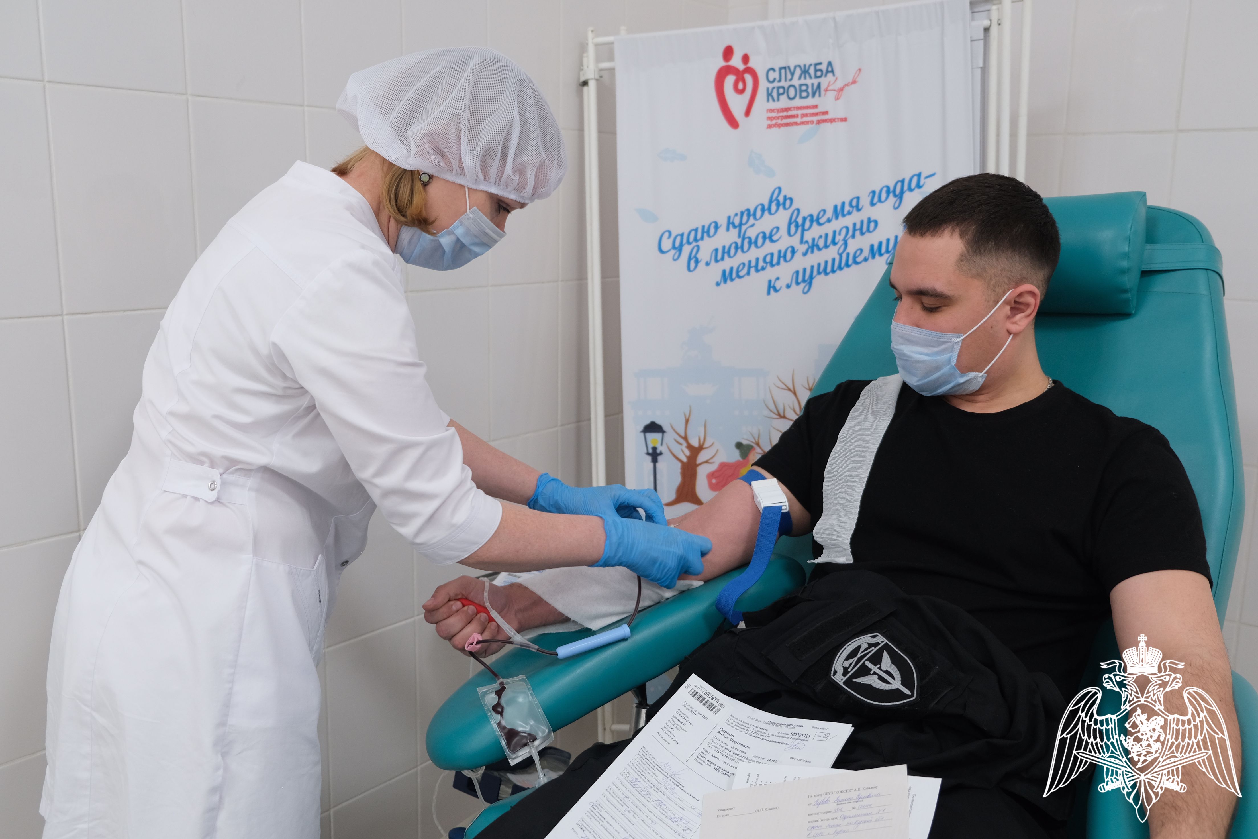 Военнослужащие и сотрудники росгвардии в Курске приняли участие в донорской акции